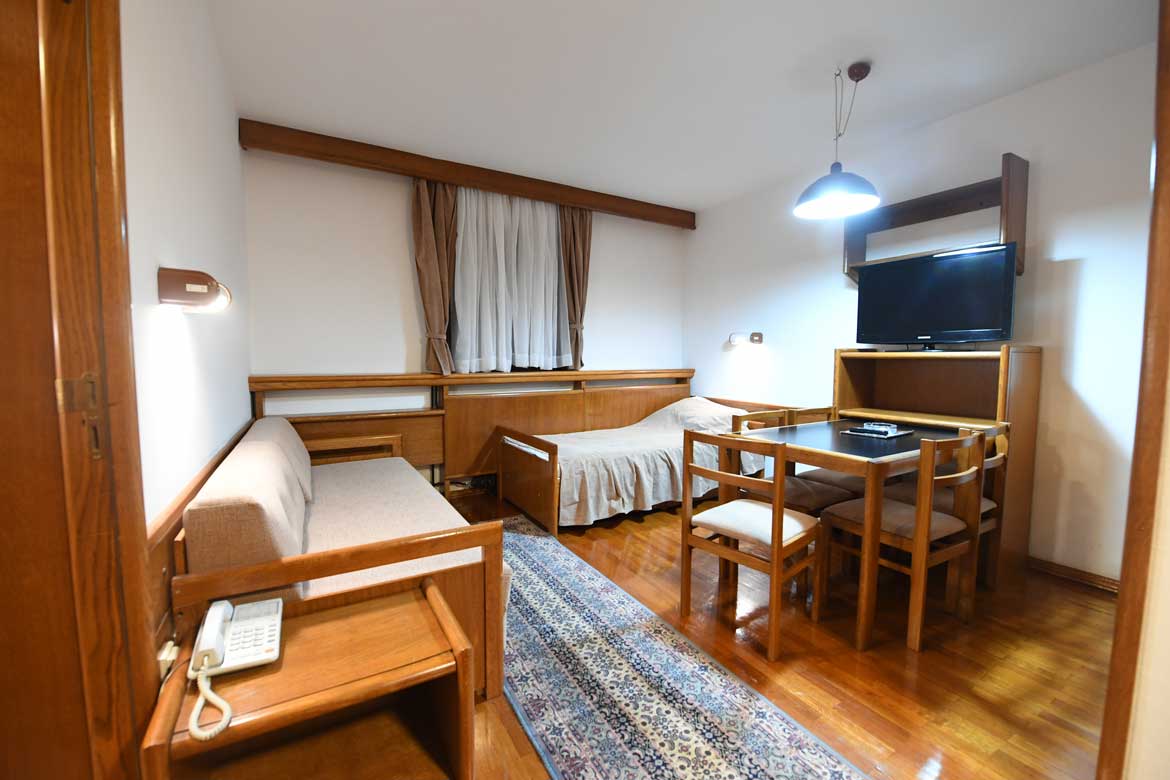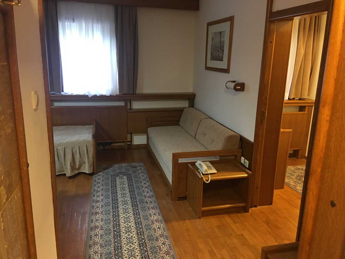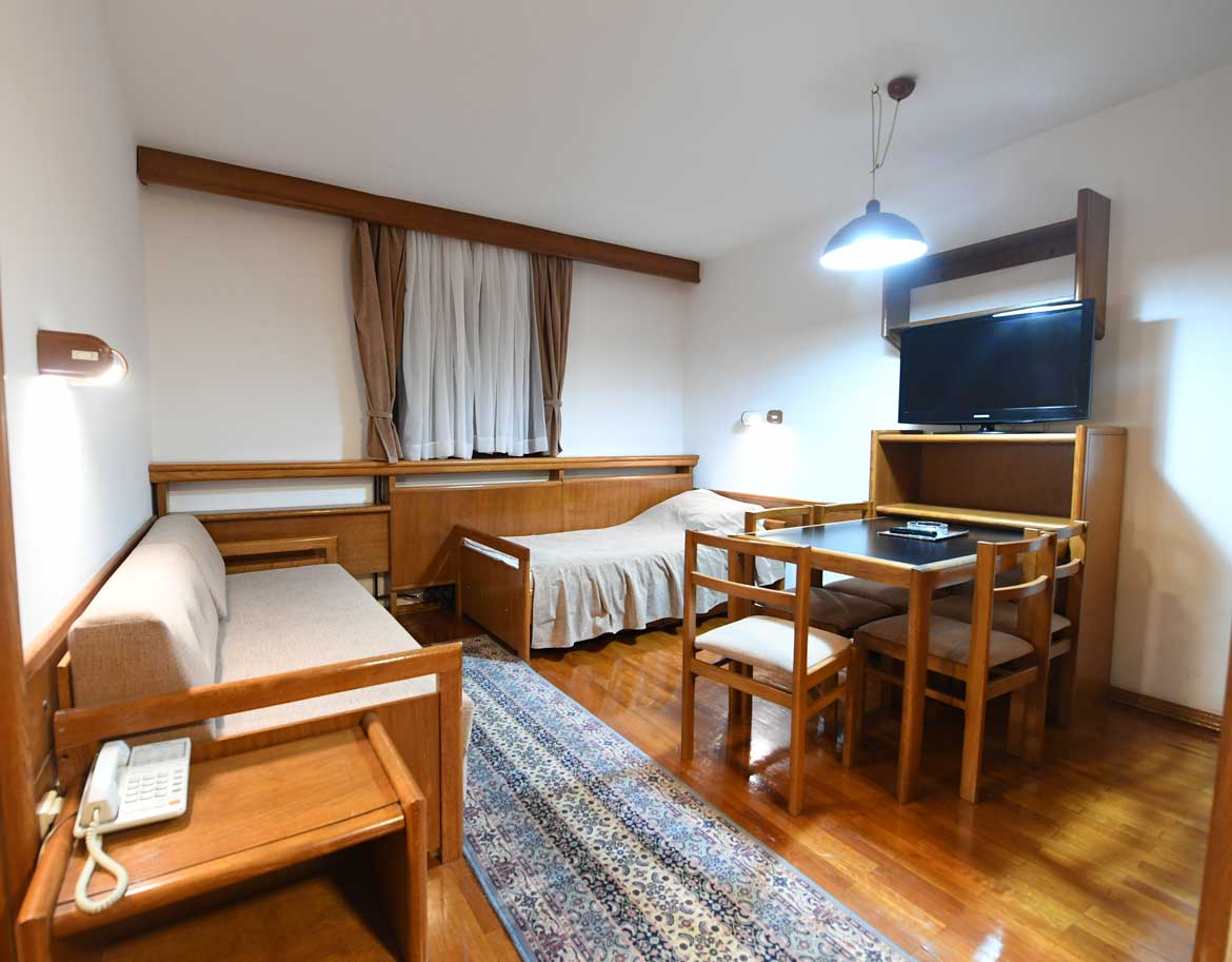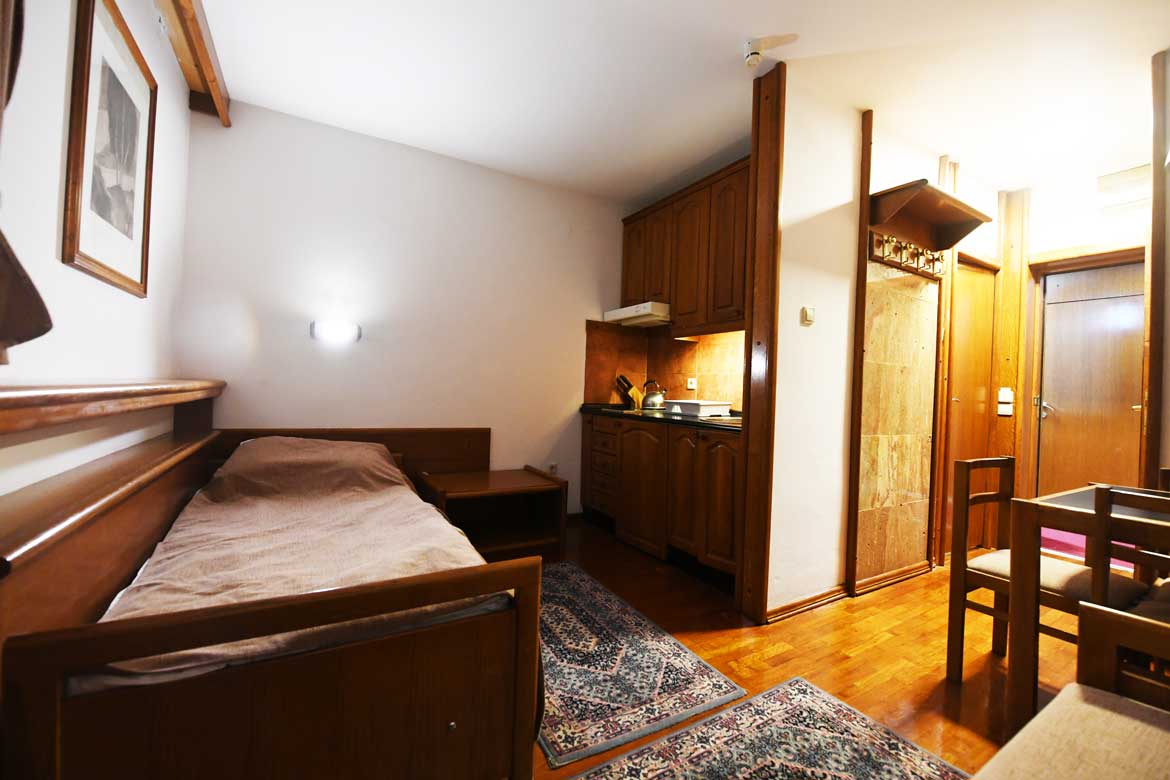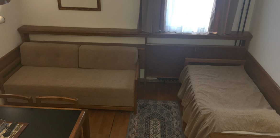Jedan singl ležaj i trosed na rasklapanje za dve osobe (maks 3 osobe).