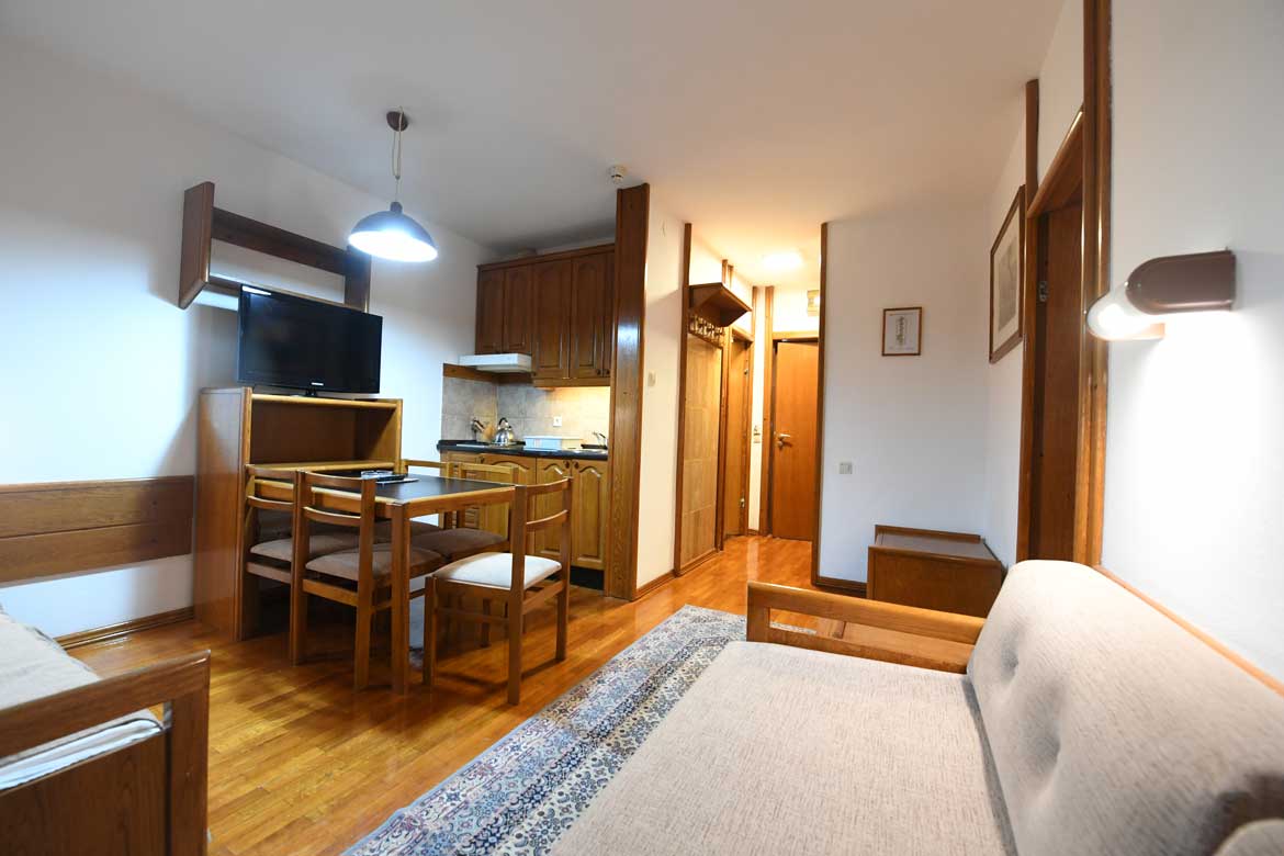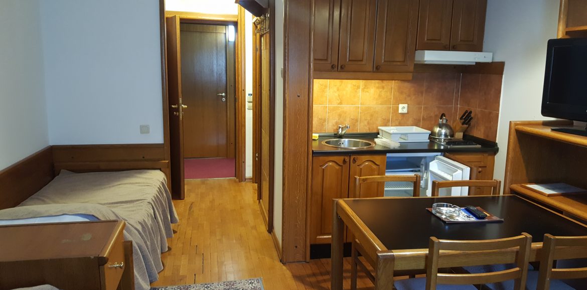 CATV, telefon, krevetac (na upit), kupatilo (tuš), fen, kompletno opremljena kuhinja (mini frižider, ugradna ploča sa dve ringle i kvalitetan pribor za individualno pripremanje i serviranje obroka).
