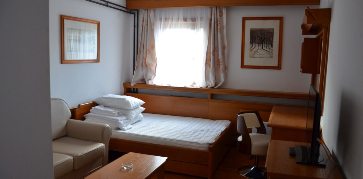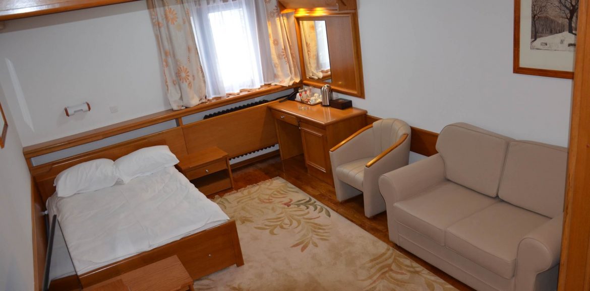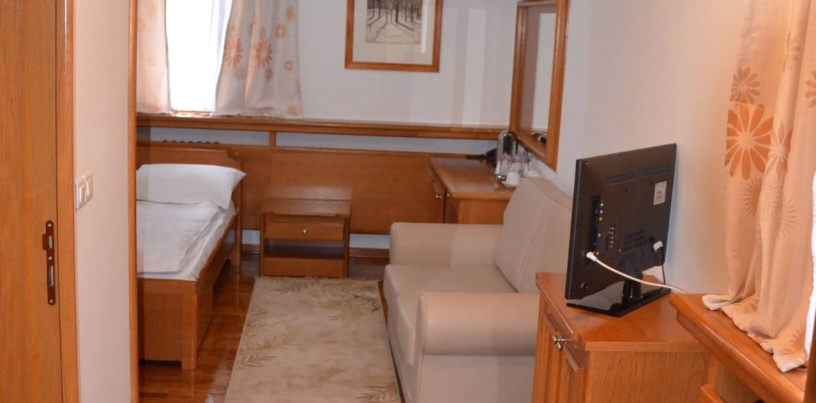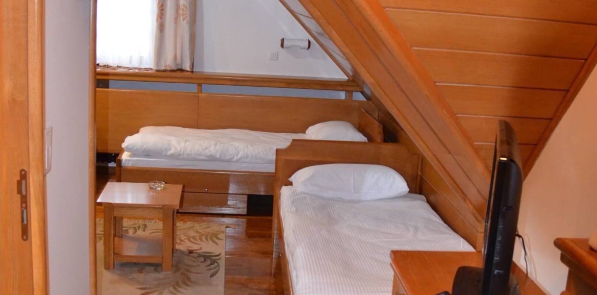 3 singl ležaja i 1 trosed na rasklapanje za 2 osobe, ili 1 trosed, 1 francuz i 1 singl ležaj, u jednoj prostoriji (max 5 osoba)